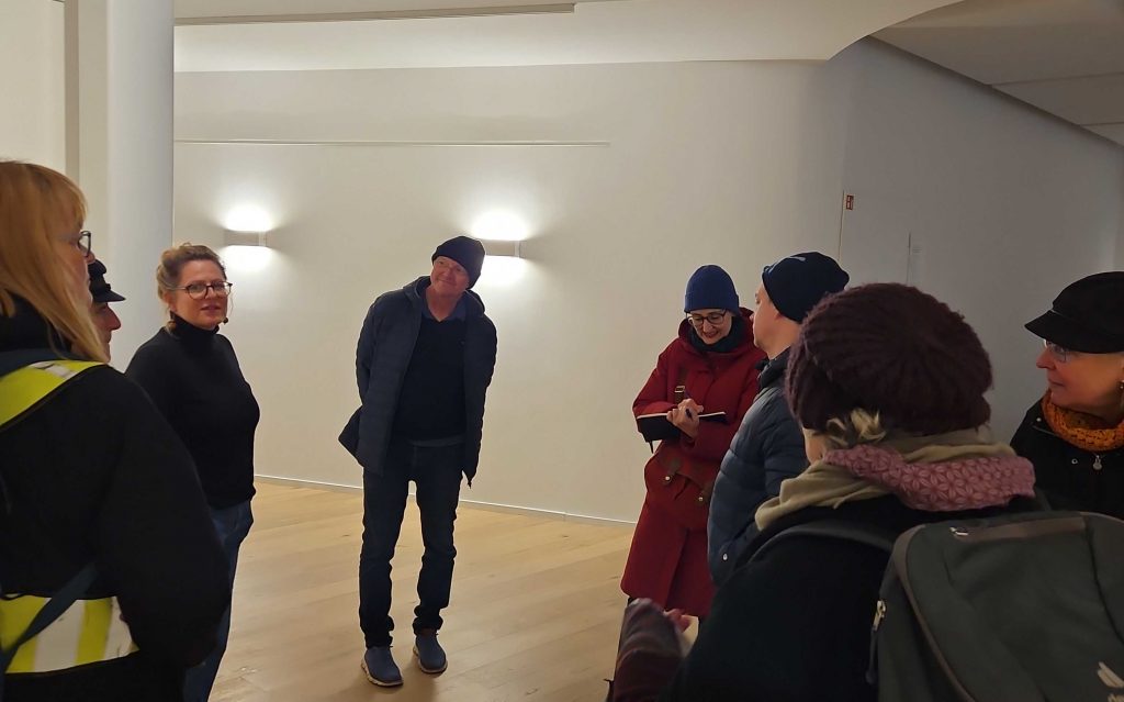 Christiane Heß vom Geschichtsort Stadthaus (dritte von links) hielt eine kurze Einführung über die ehemalige Gestapozentrale.