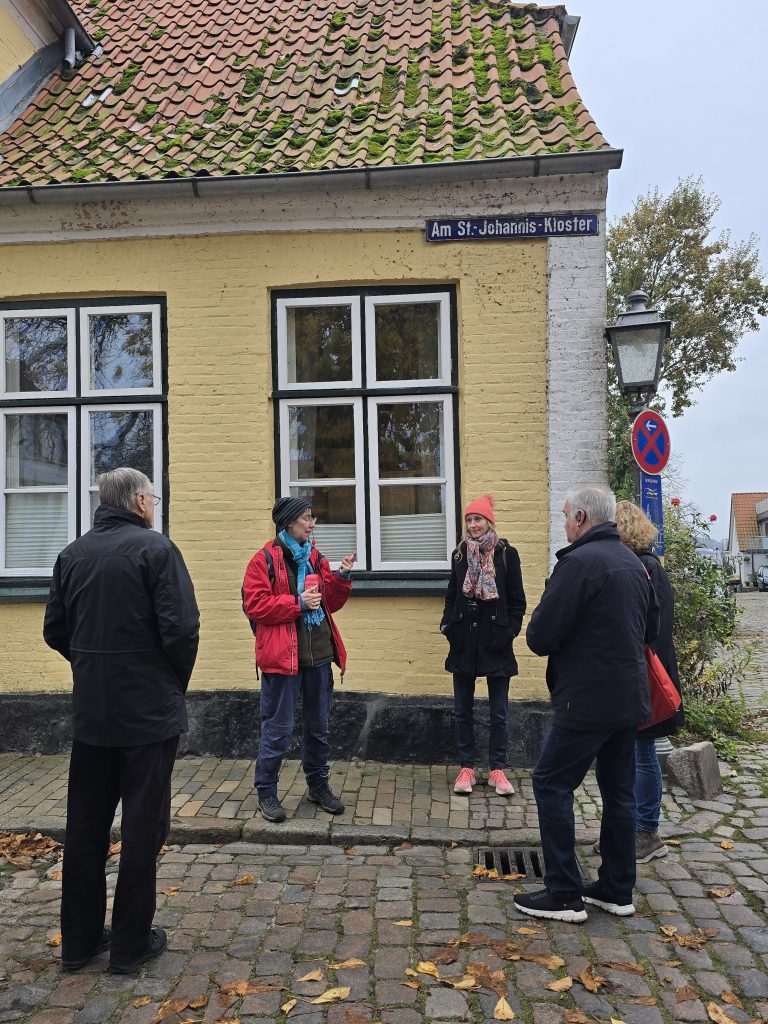 Der zweite Tag begann erneut mit Karen, die uns zunächst zum Holm führte. Die ehemalige Fischersiedlung mit ihren kleinen Häusern, Klöntüren und der Kapelle inmitten der Holmer Beliebung zählt zu den stimmungsvollsten Orten Schleswigs. Karens Erklärungen waren nicht nur historisch fundiert, sondern auch durch ihre persönliche Verbundenheit mit dem Holm besonders authentisch.