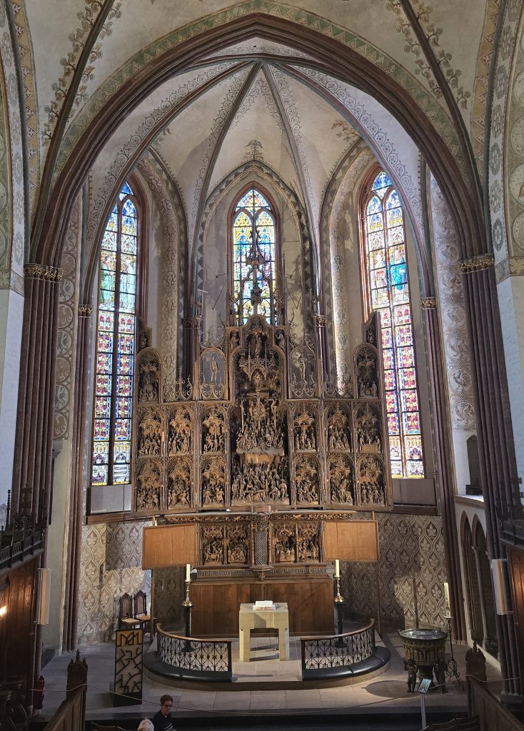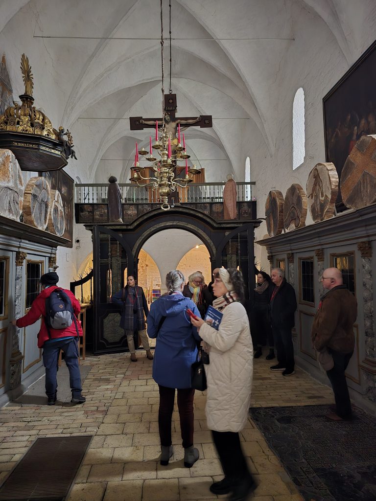 Am Nachmittag führte uns Karen Clausen-Franzen durch Schleswig. Ihre Führungen waren in jeder Hinsicht exzellent: fachlich präzise, hervorragend strukturiert, ruhig im Vortrag und gleichzeitig lebendig. Im Dom gab sie eine fundierte Einführung, bevor ich selbst den Brüggemann-Altar erläuterte und dabei meine frisch erworbenen Kenntnisse als Kirchenführerin einbringen konnte. Die Kombination aus Karens Überblick und der detaillierten Betrachtung des Altars funktionierte hervorragend.